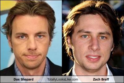 Is it just me or does zach braff look like dax shepard. Zach Braff Scrubs Garden State Alex Inc is an American actor writer and producer. In fact people often mix the two of them up - so much so that Zach decided to show just how closely they resemble each other.